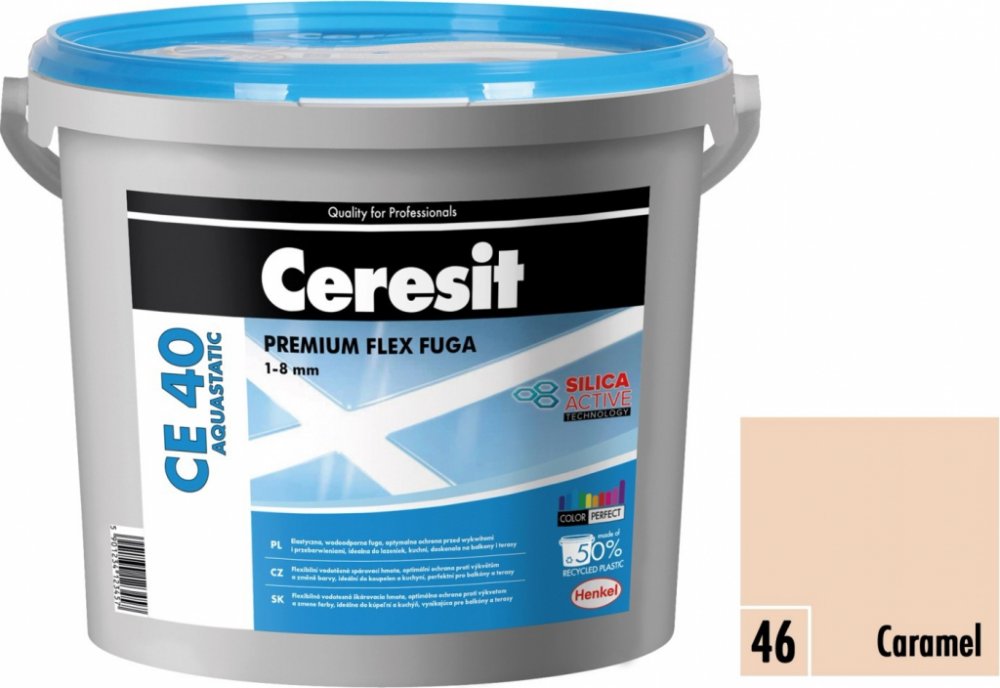 Voděodolná, flexibilní spárovací hmota vhodná obzvláště na spárování obkladů a dlažeb z keramiky, včetně gresové (nenasákavá), skla, mozaiky, přírodního kamene a mramoru na stěnách i podlahách. Určena k použití v interiéru i exteriéru, včetně balkonů, lodžií a teras. Zvlášť se doporučuje na kritické podklady, jako je sádrokarton, dřevotříška a plochy s podlahovým vytápěním. Inovativní polymerová technologie Silica Active zaručuje optimální čas vytvrzení a umývání v případě gresových i keramických dlažeb, vysokou odolnost proti vzniku trhlin a poškrábání a zároveň technologie Color Perfect zabezpečuje trvalou barevnost, dlouholetou vysokou kvalitu a dokonalý vzhled spárovací hmoty. Díky vodoodpudivému efektu Aquastatic zůstávají kapky na povrchu spáry a nevsakují se do její struktury, což zvyšuje odolnost proti plísním a poškození. Tyto vlastnosti dělají spárovací hmotu CE 40 ideálním přípravkem k použití na místech dlouhodobě vystaveným působení vody, jako jsou koupelny, sprchy a kuchyně. Vlastnosti - S technologií Color Perfect (dokonalá stálost a intenzita barev, snadné čištění a péče, odolnost proti výkvětům a změně barvy - Vysoká odolnost proti vzniku trhlin a poškrábání - Optimální čas vytvrzení a umývání v případě gresových dlažeb - Snadné míchání a aplikace spárovací hmoty - Chráněna proti plísním a houbám Technické parametry: Teplota spárování: +5°C až +25°C Doba počátečního zrání: cca 3 min. Doba zpracování: do 1,5 hodiny Pochozí po: 6 hod. Tepelná odolnost: od -30°C až do +70°C Orientační spotřeba: 0,4 kg/m2 na šířku spáry 2 mm a rozměr obkladů 10 x 10 cm