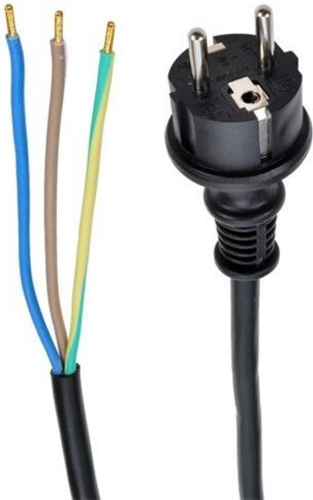 Přívodní gumový kabel s volnými vodiči umožňuje připojení přímo do spotřebiče nebo k pohyblivé zásuvce. Vodiče jsou ze splétaných měděných drátků s měděnými krimpovanými koncovkami, usnadňující montáž do svorkovnice. Určeno pro venkovní i vnitřní použití, stupeň krytí IP44.