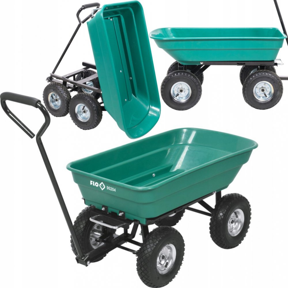 Konstrukce vozíku je vyrobena z vysoce kvalitních komponentů, díky čemuž je vozík robustní, přední náprava umožňující otáčení, takže práce s ním je jednoduchá a příjemná. Nafukovací kola poskytují vynikající přilnavost.