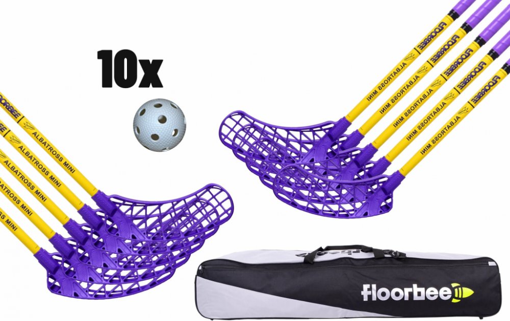 Set je složený z následujících produktů: FLOORBEE ALBATROSS MINI JET FLOORBEE TEAM BAG PILOT CASE 2.0 FLOORBEE TORPEDO IFF MATCH FLOORBEE ALBATROSS MINI JET Hůl je vyrobena speciálně pro nejmenší florbalisty. Albatros 36 je všestranná hůl určená pro základní, pokračovací i akční herní výcvik dětí, které s ní natrénují techniku, držení, kličky, nahrávky i střelbu. V čem je naše hůl unikátní? Floorbee při vývoji této hole použilo všechny doposud získané zkušenosti a technologie tak, aby držení a manipulace s holí bylo pro mladé a začínající hráče co nejpřirozenější. Hůl je vyrobena ze speciálního druhu skelného vlákna. Vysoký důraz je kladen na postupné skládání a směřování jednotlivých vrstev tak, aby byla odolná vůči “sekancům“ a nárazům, které jsou běžné, když se děti učí hrát a pilují svoji techniku. Přesným skládáním vrstev je hůl pevnější a zároveň lehčí než srovnatelné hole na trhu. Albatross 36 je výborná hůl pro ty, kteří se chtějí naučit dokonalou techniku, ovladatelnost míčku a zároveň ostrou a přesnou střelu. Její váha je v 65 cm pouhých 183 gramů! Svojí kvalitou se stává nejlepší holí na trhu. FLOORBEE TEAM Bag Pilot Case Toolbag 2.0 Klasický odolný toolbag, který obsahuje 1 velkou kapsu na zip. V této vnitřní komoře najdeš úložné prostory (kapsy) pro drobnosti a mokré oblečení. Vak má nastavitelný popruh přes rameno a 2 popruhy na nošení v rukou. Klíčové vlastnosti: pojme až 20 ks florbalových hokejek obsahuje několik vnitřních úložných kapes nastavitelný popruh přes rameno 2 úchyty na nošení v ruce. poutko na pověšení FLOORBEE Torpedo IFF match Florbalový míček Oficiální míček finálových turnajů mládežnických výběrů Českého florbalu. Certifikovaný florbalový míček se strukturovaným povrchem. Míček byl vyvíjen 2 roky dle parametrů IFF. Koncept vychází z golfových míčků, kdy jamky na povrchu míčku zrychlují dráhu letu. Uprostřed každé jamky je však malý výstupek, aby míček ještě rychleji letěl. Míček je velmi trvanlivý, precizně vyrobený speciální technikou, která zajišťuje tak velkou odolnost.