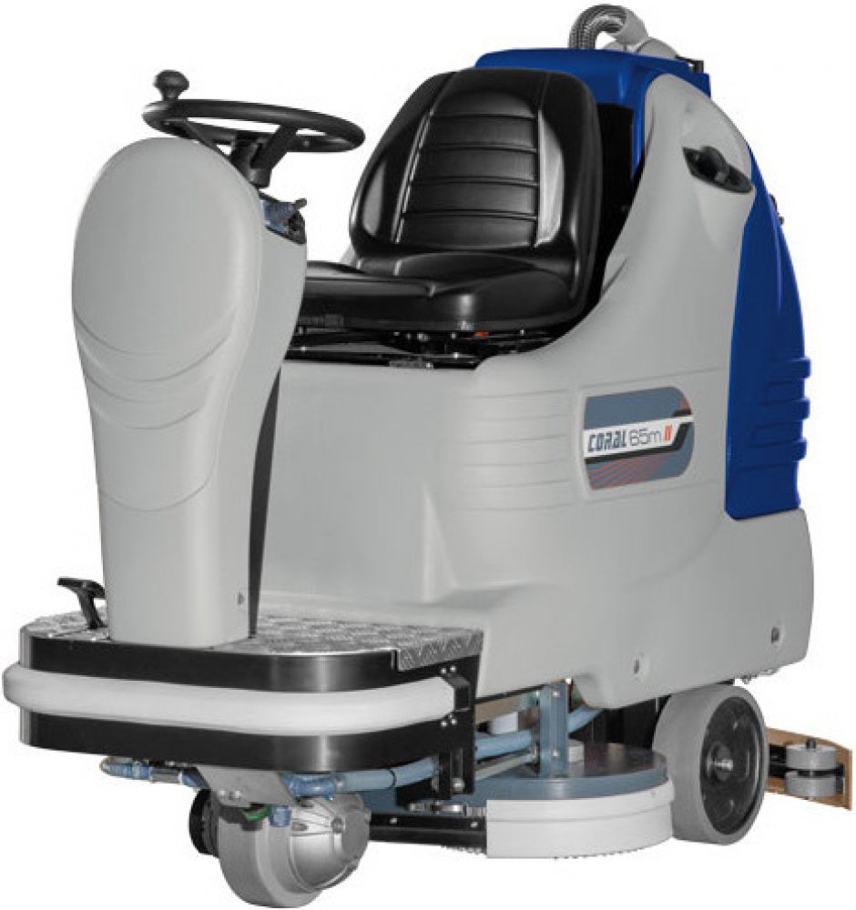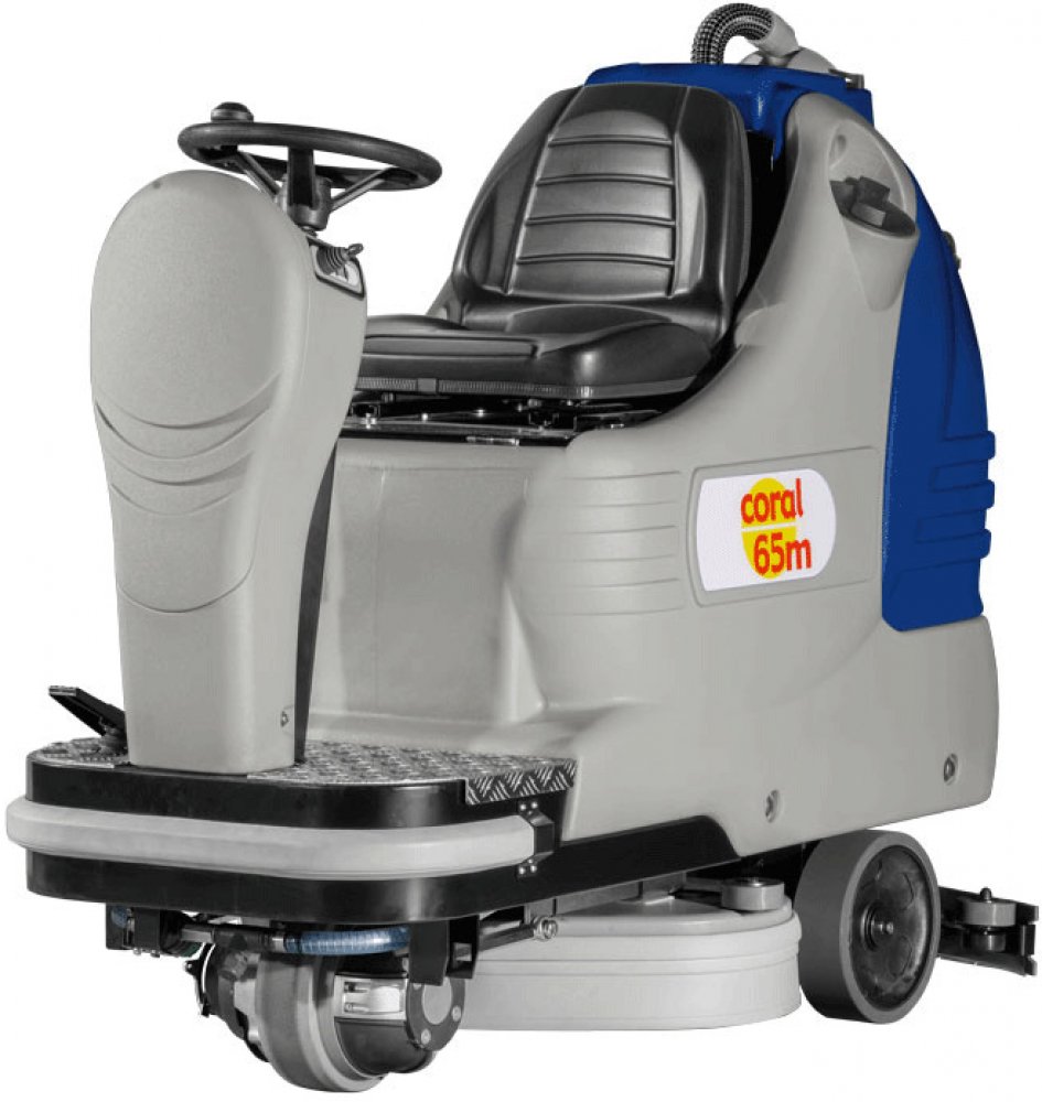 Podlahový čisticí stroj CORAL 65 je obratný, robustní a spolehlivý podlahový mycí stroj se sedící obsluhou. Mycí pracovní záběr je 70 cm. Je dodáván ve verzi se dvěma kartáči, pojezdem směrem vpřed i vzad a možností regulace rychlosti pojezdu (želva / zajíc) a s možností regulace sacího výkonu ve dvou úrovních (SILENT mode). Díky své kvalitě (použit polyetylén, lakovaná ocel, hliník a nerez), robustnosti (celokovový rám) a kvalitnímu dílenskému zpracování (vyrobeno v EU) je vhodný pro úklid všech typů podlah. Stroj je jednoduchý na obsluhu (možnost ovládání pouze jedním tlačítkem), má vynikající mycí účinek díky přítlaku až 60 kg a jeho parabolická sací lišta umístěná za strojem zajišťuje vynikající odsávání nečistot a čisticího roztoku z povrchu. LED displej informuje v zorném poli obsluhy o stavu vybití baterie, o nedostatku čisticího roztoku a nastavené pojezdové rychlosti a přítlaku. Mycí stroj CORAL 65 je vhodný pro úklid výrobních provozů, obchodních center, skladů, plaveckého bazénu či dopravních cest uvnitř objektu ale i do náročných průmyslových objektů jako kovovýroba, výroby barev, montáže strojů, svařovny a lisovny, provozy automotive, potravinářství, atp. Výbavou na přání je nestavěná nabíječka a systém externího dávkování čisticího prostředku do vody - systém 3S.