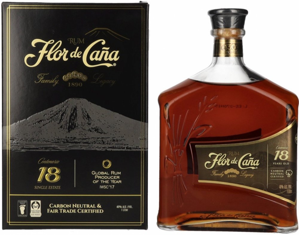 Flor de Caňa Flor de Cana 40 % 1 l 18 let Nikaragua tmavé po bourbonu karton