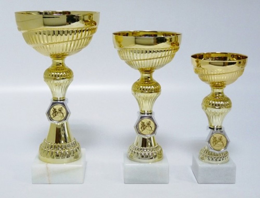 2974-165. Výška pohárů je uvedena za lomítkem katalogového čísla. Průměr kalichů 12, 10, 8 cm. Při nákupu jedné sady(2974/24/21/18cm) - text na štítky napište jen do rubriky "štítek na" např. O POHÁR STAROSTY 1. - 3. místo 10.10.2018 Domažlice a do součtu štítků zadejte 3 !!! Ukázka možného zpracování štítku - viz.další foto. Pokud objednáváte ve větším počtu a pro různé kategorie, zpracujte texty ve Vašem PC a přiložte jako samostatný soubor k tomu určený před uzavřením objednávky(2 krok pokladna) a zde vyplňte pouze počty štítků - pro správnou kalkulaci. -