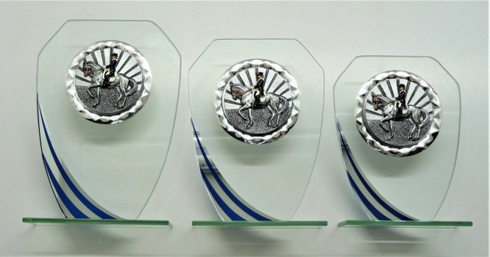 K11-FG068. Skleněné trofeje osazené keramickým emblémem o průměru 7 cm (viz.další foto) - výška trofejí je uvedena za lomítkem katalogového čísla. Při objednání 1 sady trofejí (21,5-19,5-17,5cm), text na štítek napište jen do rubriky "štítek na" a do košíku zadejte 3. Ukázka možného zpracování štítku viz.další foto. Pokud objednáváte ve větším počtu a pro různé kategorie, zpracujte texty ve Vašem PC a přiložte jako samostatný soubor k tomu určený před uzavřením objednávky (2 krok pokladna) a zde vyplňte pouze součet štítků - pro správnou kalkulaci/fakturaci/. -