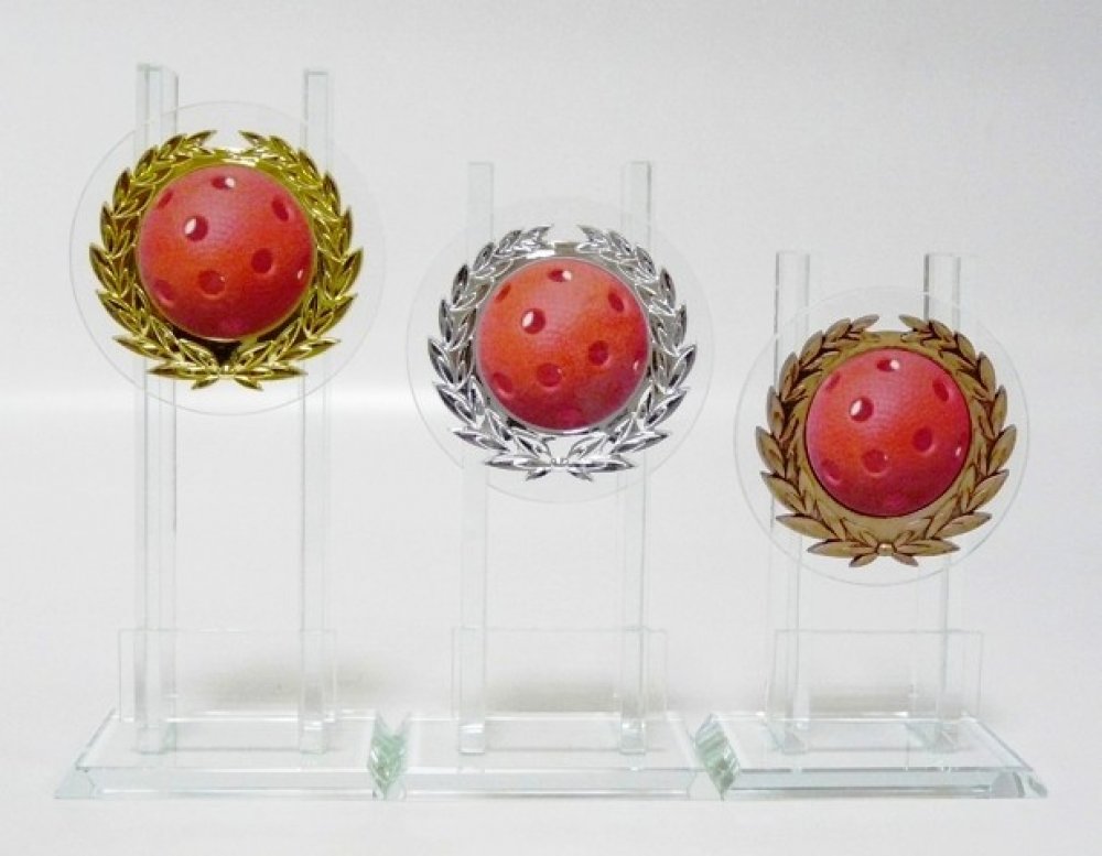 K11-FG068. Skleněné trofeje osazené keramickým emblémem o průměru 7 cm (viz.další foto) - výška trofejí je uvedena za lomítkem katalogového čísla. Při objednání 1 sady trofejí (21,5-19,5-17,5cm), text na štítek napište jen do rubriky "štítek na" a do košíku zadejte 3. Ukázka možného zpracování štítku viz.další foto. Pokud objednáváte ve větším počtu a pro různé kategorie, zpracujte texty ve Vašem ...