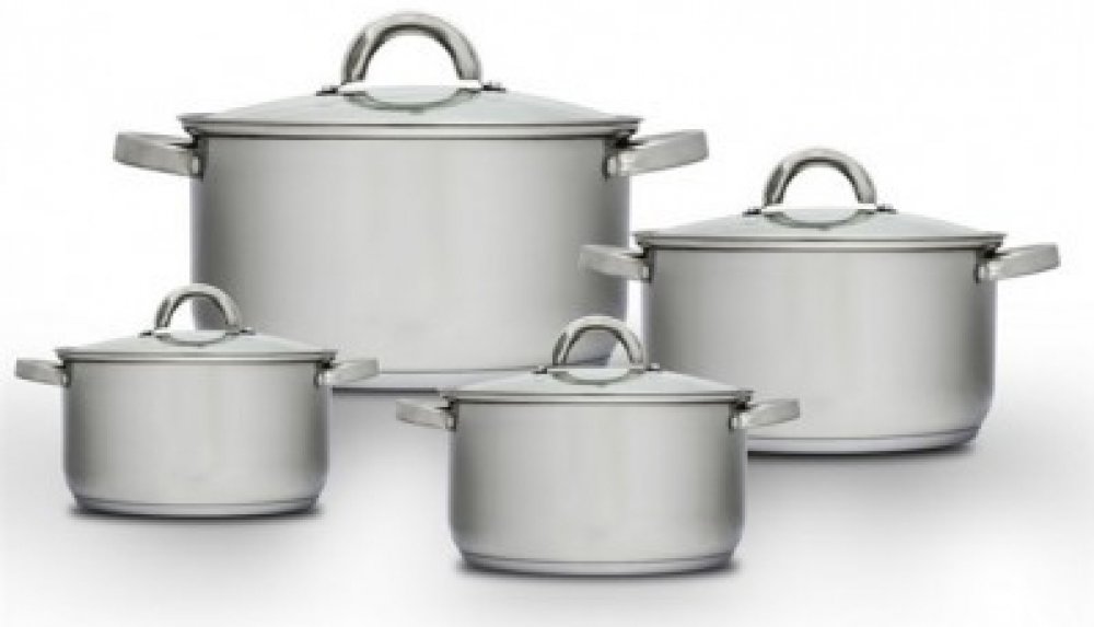 síla nerezi - tělo 0,5mm, dno 0,5mm hliník + 2mm železo + 0,5mm hliník s 18/0 protektorem pro indukci - Indukční dno Sada: - Hrnec s poklicí 16 x 10,5 cm; objem 1,9l - Hrnec s poklicí 18 x 11,5 cm; objem 2,6l - Hrnec s poklicí 20 x 12,5 cm; objem 3,6l - Hrnec s poklicí 24 x 14,5 cm; objem 6,1l Popis: Nádobí je vyrobeno z vysoce kvalitní nerezové oceli, které vděčí za svou vysokou pevnost a odoln...