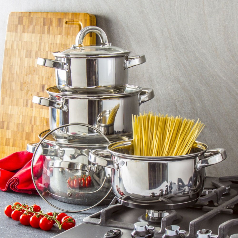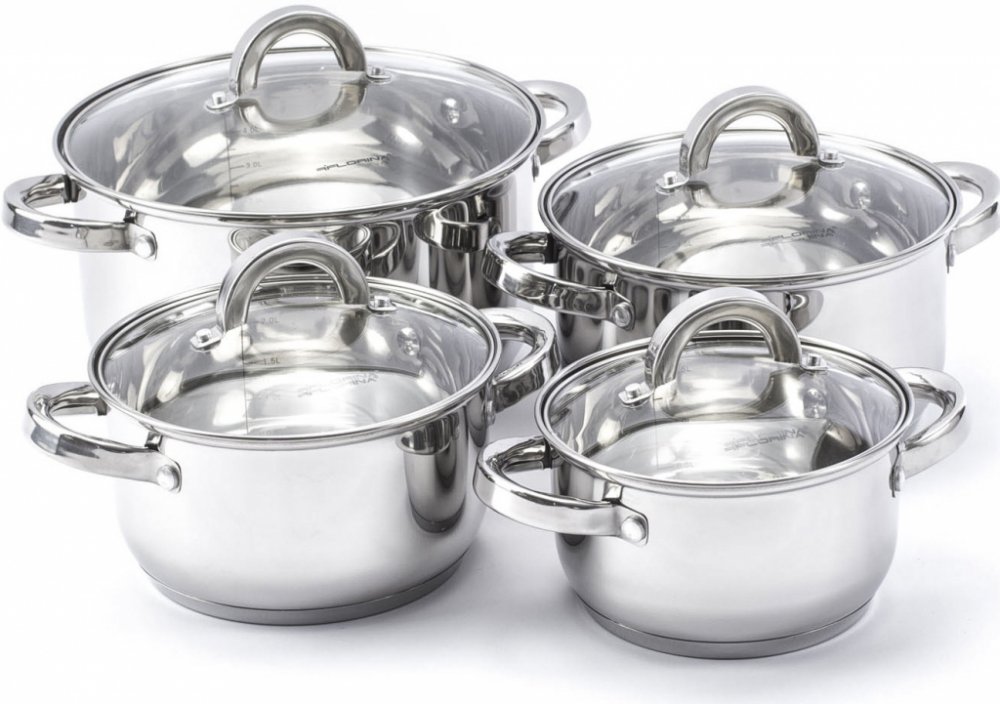 Sada nerezového nádobí Florina Claude. Hrnce jsou vyrobeny z nerezové oceli o tloušťce stěny 0,5 mm. Ke každému hrnci je v balení také skleněná poklice s ventilem pro únik páry. Hrnce jsou vhodné na všechny typy sporáků včetně indukce. Povrch hrnců je matný.