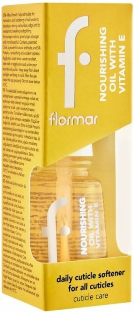 Vyživující olej Flormar s obsahem vitamínu E vyživuje a napomáhá růstu nehtů. Tento bezbarvý olej zabraňuje zatvrdnutí kůžičky okolo nehtu a tím tak ulehčuje každodenní péči o Vaše ruce. Zabraňuje třepení nehtů a napomáhá jejich regeneraci, například po odlakování. - vyživuje a napomáhá růstu - obsahuje vitamín E - zabraňuje třepení ...