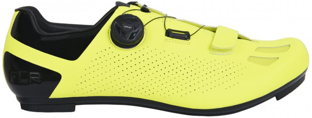 Elegantní, aerodynamická a pohodlná obuv FLR F-11 inspirovaná profesionály se vyznačuje kombinací výkonu, tuhosti a maximální podpory na silnici. Zároveň jsou tretry lehké a jednoduše se zapínají. | FLR F-11 jsou prvotřídní silniční tretry s bezešvou konstrukcí svršku tvořenou z jednoho kusu prvotřídního mikrovlákna, který se přizpůsobí tvaru vaší nohy. Systém šněrování je založen na jediném kolečku Atop a pásce na suchý zip. Zapínání je tak jednoduché a bezpečné. Kombinace otvorů z nylonové síťoviny, perforovaných otvorů a prodyšného jazyka slouží k ventilaci. Model F-11 je vybaven podrážkou R250, která zvyšuje výkon a přenos síly do pedálů. Přesto tretry zůstávají lehké a pohodlné. Hmotnost 260 g