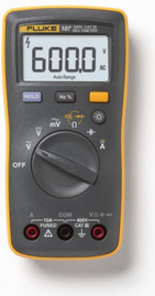 Fluke 107 je kompaktní a snadno použitelný digitální multimetr pro řešení běžných elektrikářských problémů. Je dost malý, aby se vešel do kapsy u košile nebo batohu, zároveň vysoce odolný, vyráběný v bezpečnostní kategorii CAT III.
