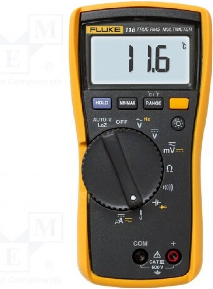 Kompaktní měřicí přístroj true RMS pro vyhledávání poruch v topných, ventilačních a klimatizačních systémech (HVAC). Model Fluke 116 byl navržen se zvláštním ohledem na profesionály v oboru HVAC. Přístroj má všechny funkce vyžadované u měřicích přístrojů HVAC včetně měření teploty a mikroampérů a umožňuje tedy rychlé vyhledávání poruch zařízení topných, ventilačních a klimatizačních systémů a prot...