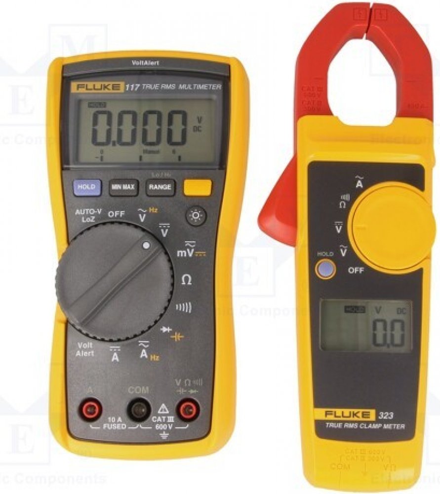 Multimetr Fluke 117, klešťový multimetr Fluke 323, sada měřicích vodičů s hroty TL175, magnetická příchytka TPAK, pouzdro C115, baterie 1,5 V a 9 V, 2 ks návod k obsluze v českém jazyce