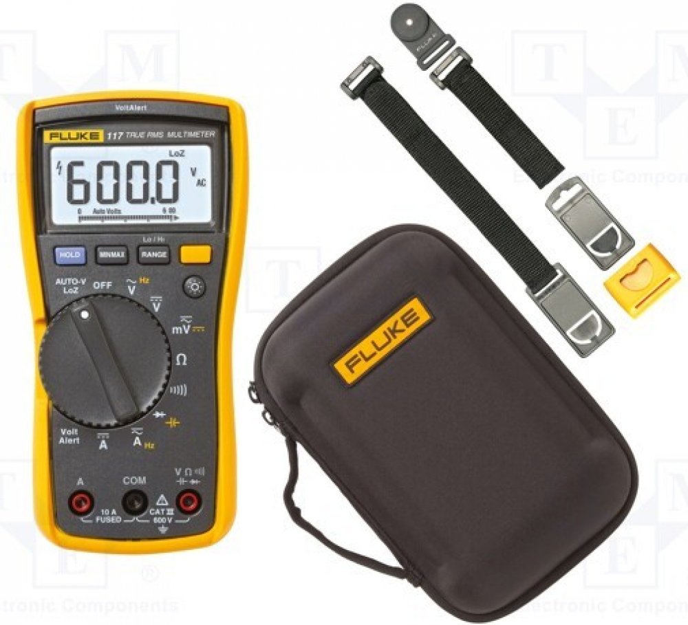 Digitální multimetr Fluke 117 s nářadím z tvrdé skořepiny C11XT a magnetickým držákem TPAK. Kompaktní měřič skutečné efektivní hodnoty pro průmyslové použití. Fluke Fluke 117 je ideální měřicí