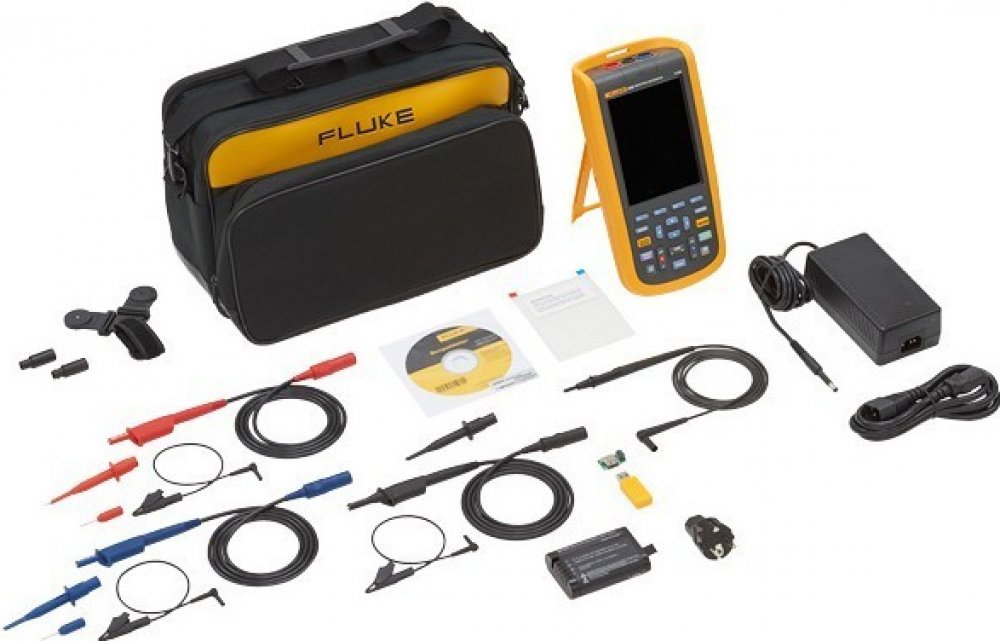 Scopemeter Fluke 124B, síťový adaptér / nabíječka, Li-ion akumulátor,1 sada stíněných sond STL120-IV (červená a modrá),1 čierna sonda 10: 1, 1 černá sonda 10:1, 1 černá stíněná sonda uzemnění, 2 háčkové svorky (červená a modrá), 2 adaptéry 4mm zdířka - BNC, 1 transportní brašna, 1 magnetický závěs, 1 ochranná fólie, software pro PC, Wifi adaptér a návod k obsluze v českém jazyce.