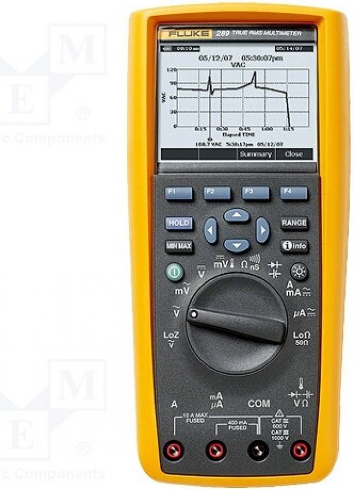 Nové multimetry Fluke 289 umožňují uložení až 15 000 hodnot. Pro přesné měření nelineárních signálů lze pomocí nich měřit napětí a proud true-rms. Multimetry nabízejí rozsah kapacity 50 mF a měření až do 10 A (nebo 20 A po dobu 30 sekund). Špičky pulzů jsou zachycovány již od 250 µs. Relativní režim odstraňuje z nízkoohmových měření a měření kapacity odpor zkušebního vedení. Oba multimetry jsou vybaveny bateriemi s životností 200 hodin.Multimetry Fluke 289 nabízejí frekvenční pásmo AC 100 kHz a základní přesnost měření stejnosměrných veličin 0,025 %. Multimetr je také vybaven funkcí měření teploty.