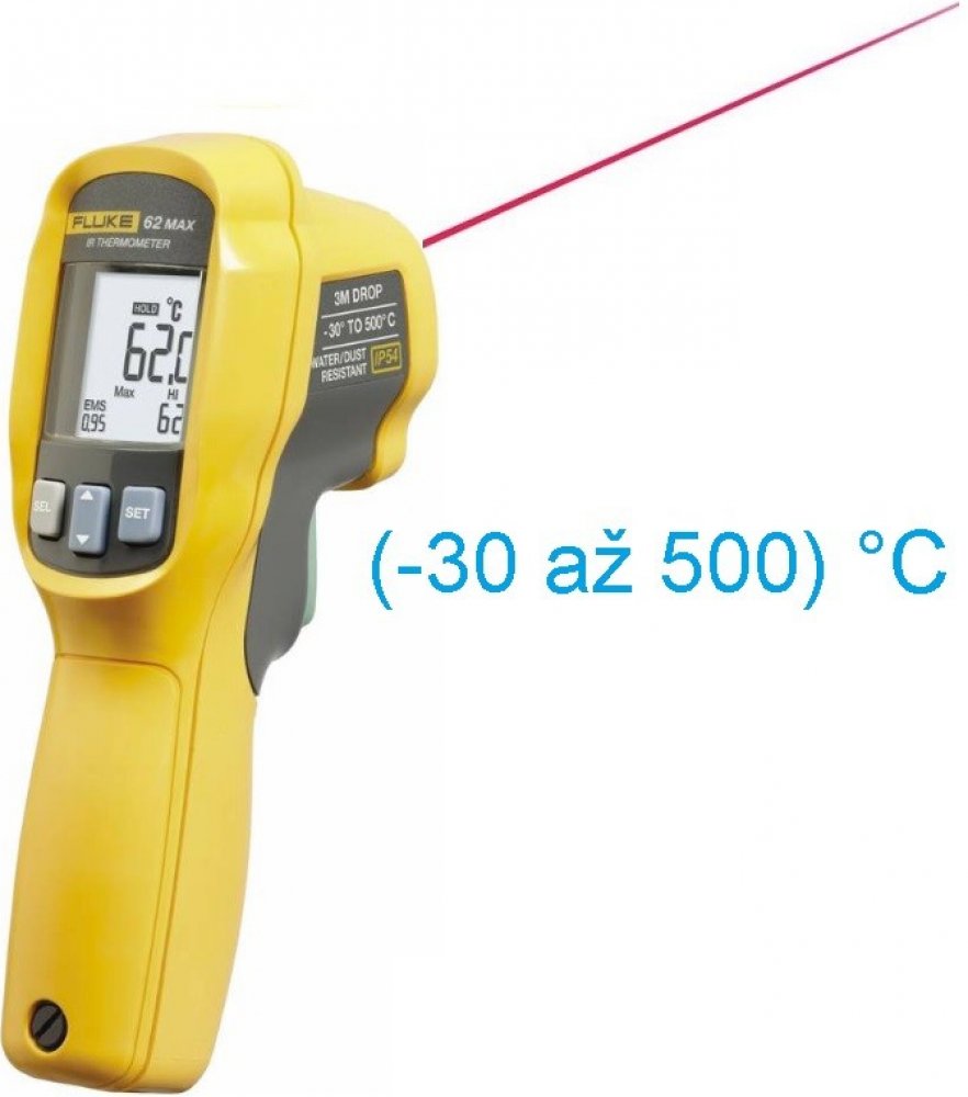 Fluke 62 MAX Infrateploměr s teplotním rozsahem -30 až 500°C Infrateploměr FLUKE 62 MAX umožňuje měření teploty -30 až 500°C