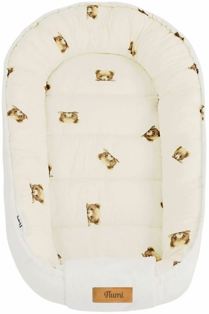 Flumi hnízdečko pro miminko, oboustranné, bavlna a velvet, světlé krémové + medvídci