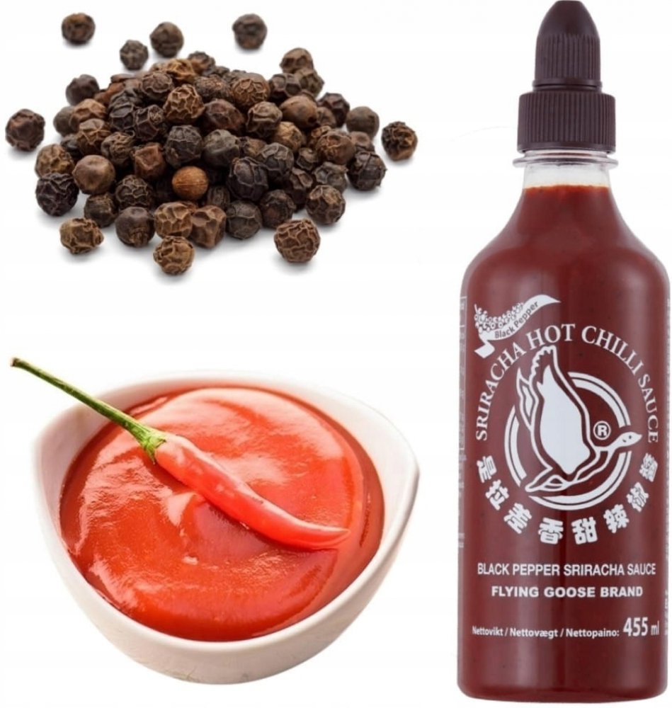 Popis: Omáčka chilli sriracha černý pepř od Flying Goose Brand v lahvičce s dávkovačem 455ml. Velmi chutná verze sriracha omáčky s přídavkem černého pepře. Je velmi ostrý, a proto dokáže uspokojit chutě obdivovatelů opravdu ostré chuti. Známý po celém světě pro svou vynikající intenzivně ostrou chuť. Díky dokonalé kombinaci všech složek si získal uznání po celém světě. Omáčka sriracha je jednou z nejznámějších chilli omáček prakticky v každé zemi. Velmi často se používá v asijské kuchyni a zejména v thajské kuchyni. Thajci ho používají každý den, jako kečup nebo majonézu.