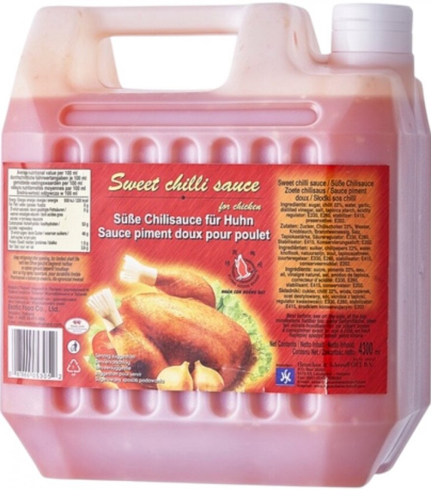 cukr, pitná voda, nakládané chilli 16% (chilli, jedlá sůl, regulátor kyselosti: kyselina octová), česnek, modifikovaný tapiokový škrob, regulátory kyselosti: E260, E330, jedlá sůl, stabilizátor: E 415, konzervant: E202.