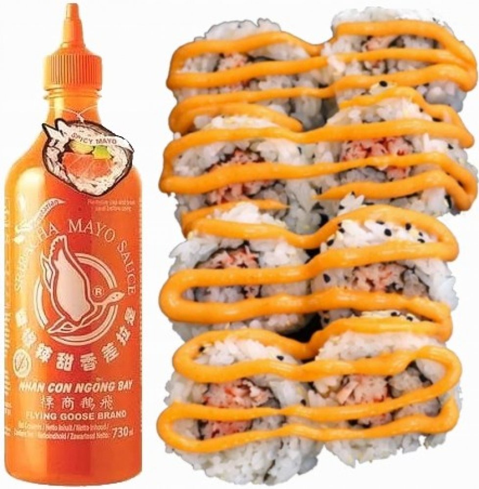 Pikantní majonéza. Obsahuje pálivou chilli omáčku sriracha
