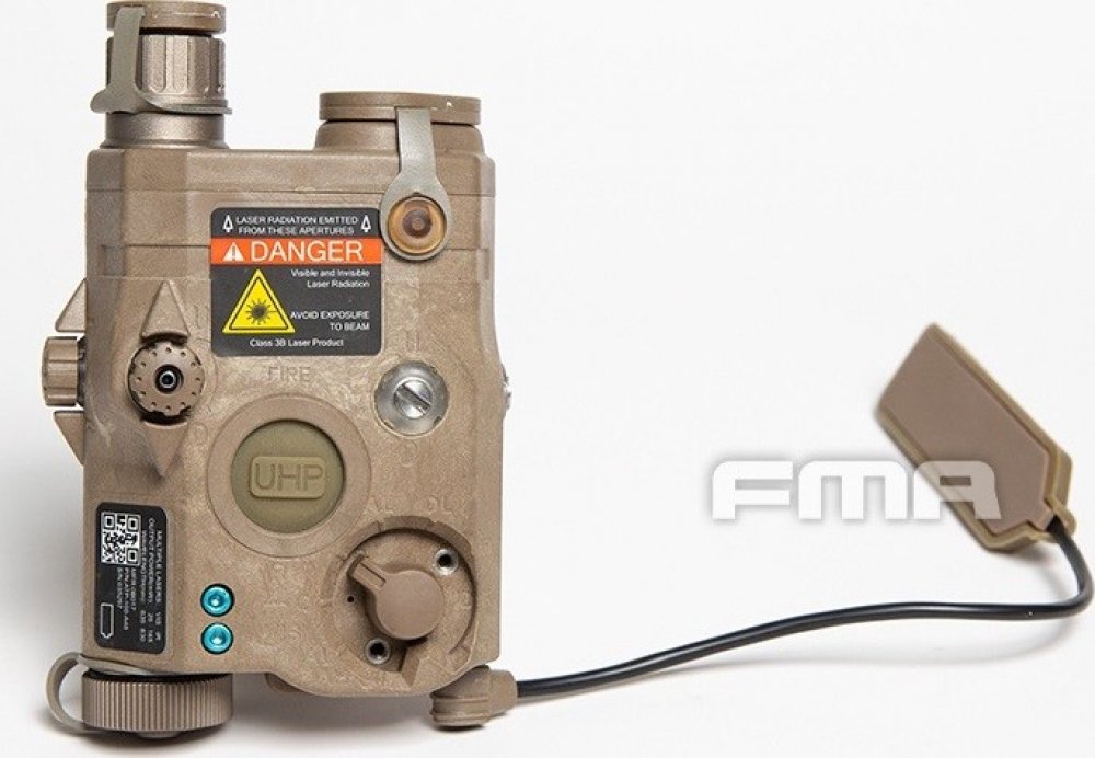 AN/PEQ15 LA5-C ATPIAL v pískové barvě od renomovaného výrobce FMA je ultra-výkonná varianta kompaktního laserového zaměřovacího systému, známého také jako PEQ box. Tento profesionální přístroj je navržen pro připevnění na standardní 20mm RIS lištu a je ideální pro taktická použití na skutečných zbraních stejně jako při tréninku a simulaci během airsoftu. Box je vybaven viditelným červeným laserem, infračerveným laserovým zaměřovačem a neviditelným IR přísvitem, což jej činí vhodným pro použití s přístroji pro noční vidění během operací za snížené viditelnosti.