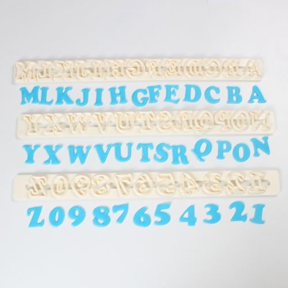 Plastový vykrajovač na písmena a číslice. Vhodné na použití s cukrovými a mandlovými hmotami (např.Gumpasta, Fondant, Marcipán). Instrukce: 1) cukrovou hmotu vyválet velmi tence, můžete podsypávat mletým cukrem anebo škrobem. Po vyválení se ujistěte, že se hmota na podložku nelepí. 2) Vykrojit proužek hmoty, položit ho na podložku vodorovně. Nechat hmotu mírně proschnout (cca 5 minut). 3) Vybrat požadované písmeno a přiložit vykrajovač svisle k hmotě (do kříže). 4) Při vykrajování hodně pevně zatlačit do celého písmene, pak mírně jezdit s hmotou a vykrajovačem po podložce sem a tam. Písmeno pak vyklepat z vykrajovače tak, že jedem konec držíte pevně, druhým koncem vyklepávat písmeno z vykrajovače. Písmeno můžete z vykrajovače dostat i za pomocí špendlíku. (Lze také vykrajovat přes potravinovou fólii). 5) Písmeno, číslo přilepit trochou alkoholu na daný povrch. Velikost: šířka cca 1,5 cm, výška písmene cca 2 cm