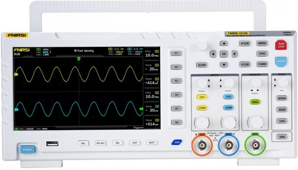 FNIRSI 1014D je osciloskop s generátorem signálu s šířkou pásma 100 MHz a vzorkovací frekvencí 1 GSa/s. Díky triggerovacím režimům (Auto, Normal, Single) je vhodný jak pro periodické analogové, tak ineperiodické digitální signály. K dispozici je funkce kurzorového měření, která usnadňuje manuální čtení parametrů, jako jsou amplituda a frekvence, bez nutnosti dalších výpočtů. Generátor nabízí 14sta...