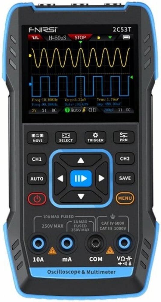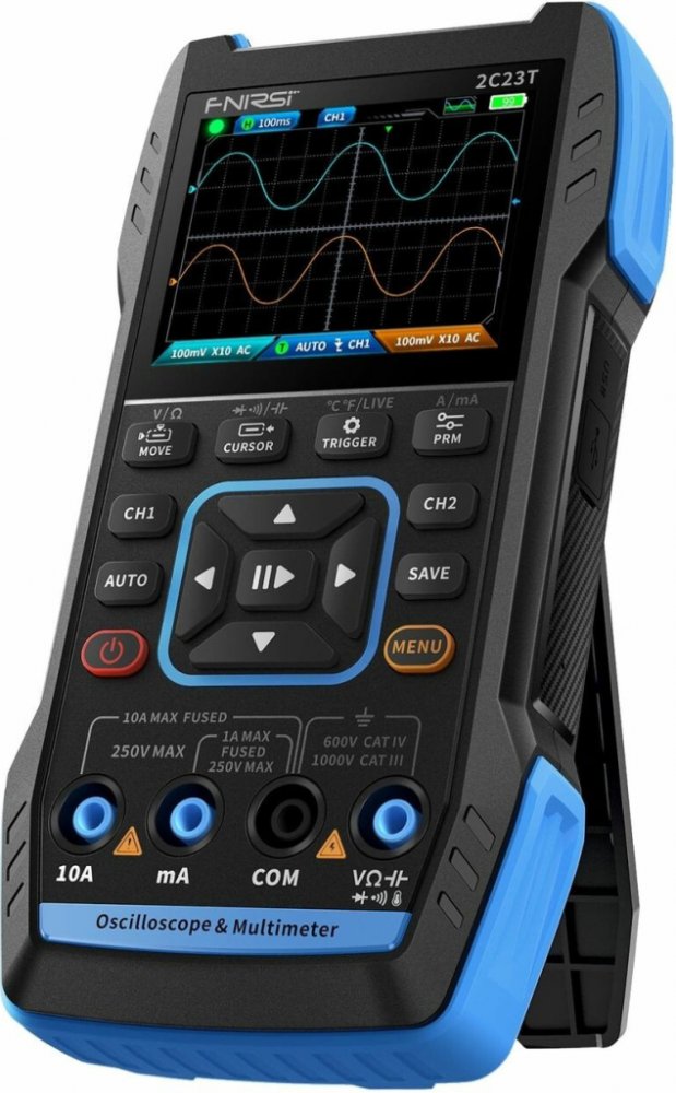 - Kombinace tří zařízení v jednom, FNIRSI 2C53T integruje funkce osciloskopu, multimetru a generátoru signálu v jednom přístroji. Tato všestrannost šetří místo, čas i náklady, což z něj činí vysoce praktický nástroj pro profesionály i hobby uživatele.