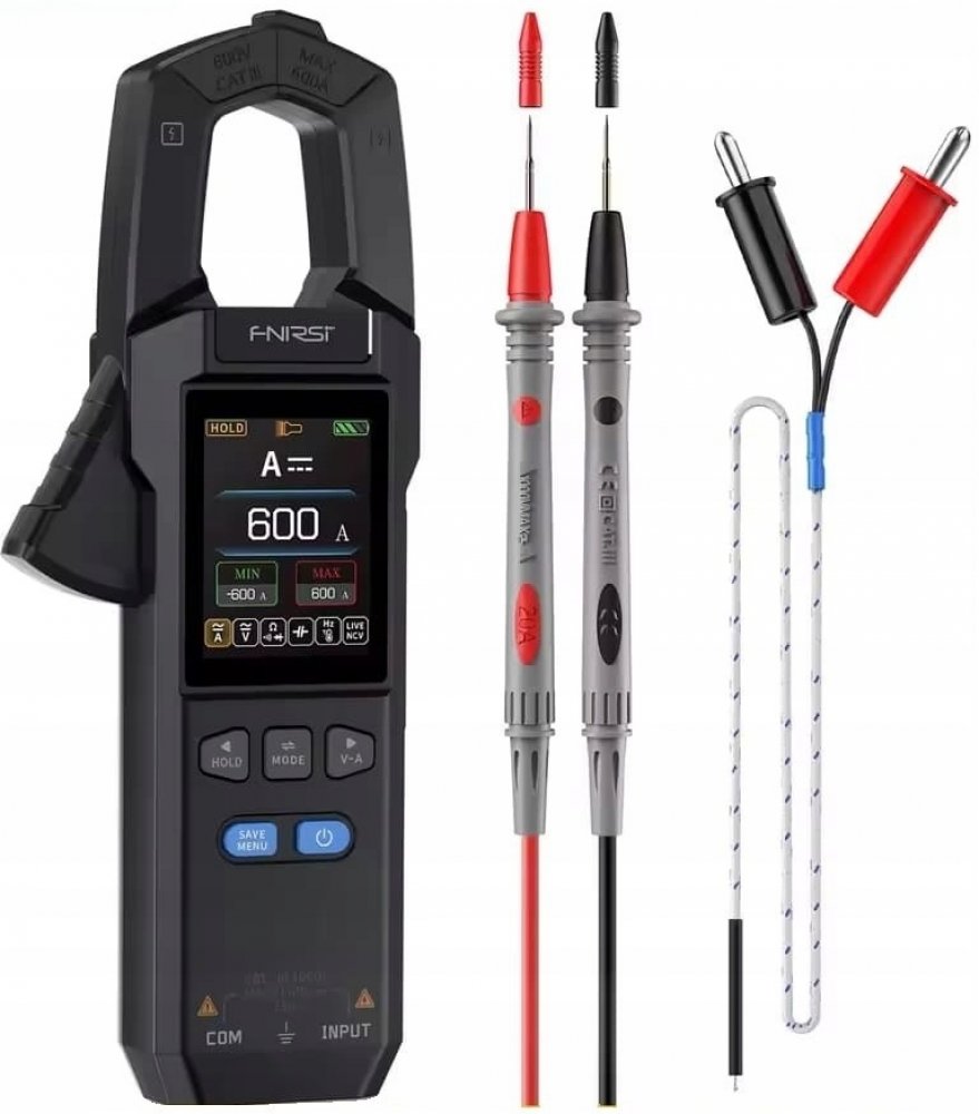 ✅ Je vybaven čitelným barevným TFT displejem HD 2" s podsvícením a má řadu dalších, velmi užitečných funkcí, jako je klešťové měření, true-rms a mnoho dalších.