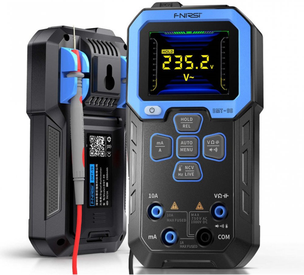 Digitální multimetr FNIRSI DMT-99 je univerzální multimetr pomocí kterého nejen změříte odpor, AC/DC napětí a proud, kapacitu, ale lze jej využít i bezkontaktní testování napětí NCV, průchodnost kabelu pomocí bzučáku.