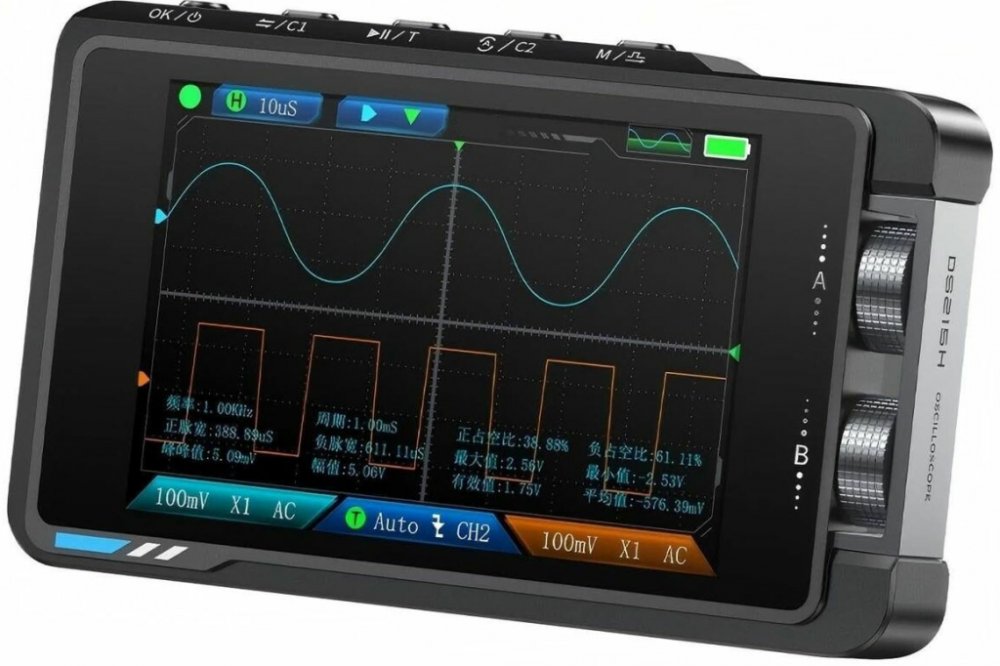 FNIRSI DS215H je kompaktní a výkonný přístroj, který kombinuje funkce dvou zařízení – digitálního osciloskopu a generátoru signálu – do jednoho přenosného zařízení. S analogovou šířkou pásma 50 MHz a vzorkovací frekvencí 250 MS/s je ideální pro širokou škálu aplikací, od vývoje a údržby elektronických zařízení až po výuku a laboratorní měření.