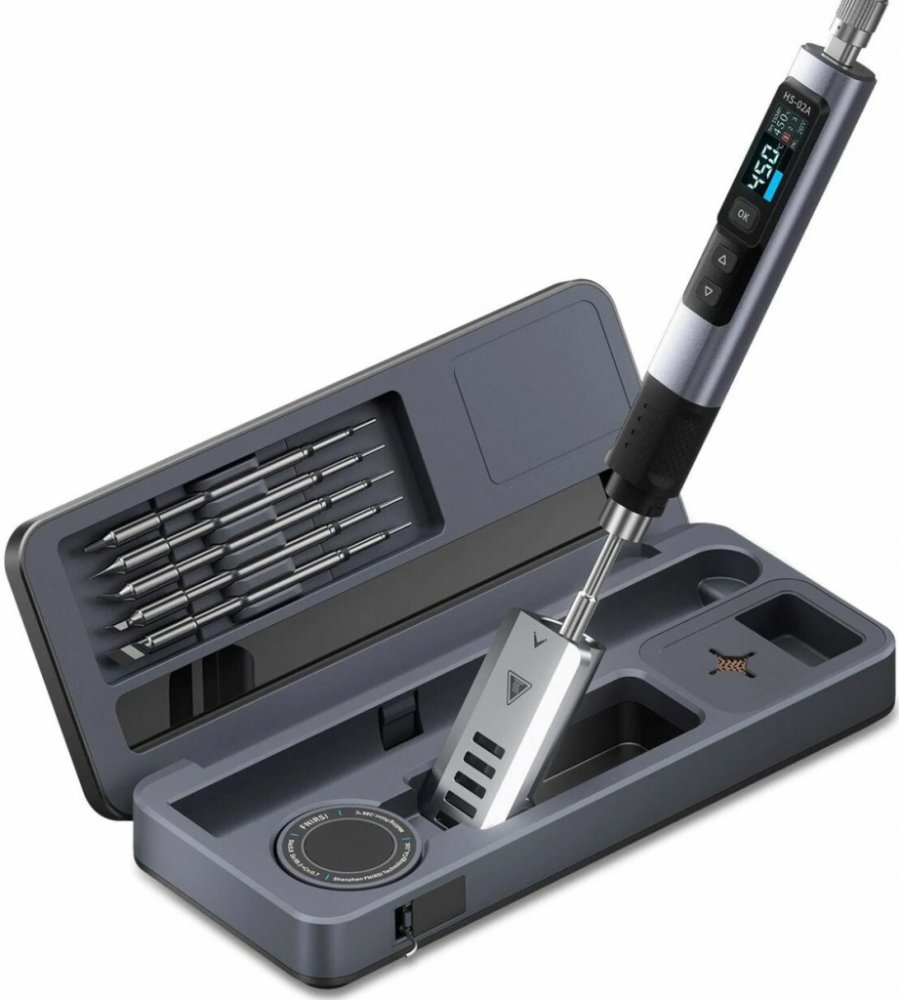 Hledáte výkonnou, přesnou a přitom kompaktní páječku, která tě nezklame ani v terénu? FNIRSI HS‑02B je špičková inteligentní mikropájka s kovovým tělem a výkonem až 100 W, která nabízí rychlý náběh teploty, přehledný barevný displej a napájení přes USB‑C. Skvělá volba pro profesionální práci na deskách plošných spojů, opravy elektroniky i mobilní použití s powerbankou.