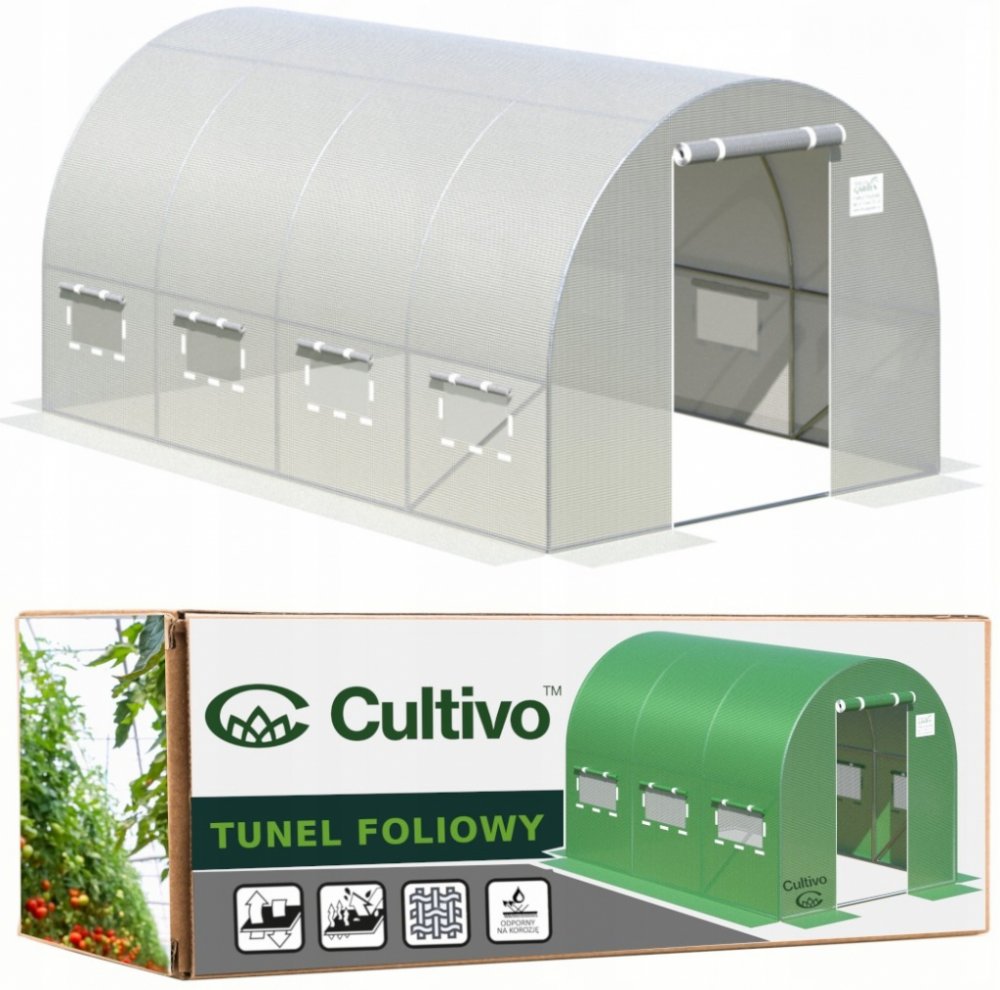 Zahradní foliovník (skleník) lze použít několik sezón. Ideální a levné řešení pro plodiny v domácích zahradách. Velmi snadná instalace a rychlé nastavení tunelu na jakékoliv místo v zahradě. Folie vyrobená přesně na míru konstrukce a díky tomu skvěle přiléhá, eliminuje chvění při silném větru. Pozinkovaná, kovová konstrukce zajišťuje vysokou stabilitu. Krycí folie PE UV-4 vyztužená síťkou (PP). Přední dveře mají dva silné zipy, aby usnadnily rychlý a prostorný vstup do skleníku.