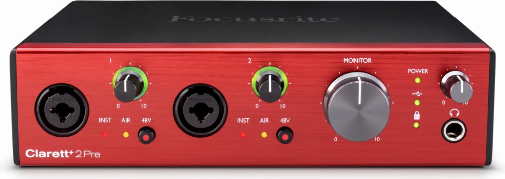 Clarett+ 2 PRE je základní model USB zvukové karty od výrobce Focusrite. Jedná se o přímého nástupce předchozího modelu Clarett 2 PRE USB. Určená je především pro méně náročnou práci v domácím studiu. Díky kompaktním rozměrům a možnosti napájení přes USB najde uplatnění i v terénu či na cestách. Disponuje A/D a D/A převodníky s maximálním rozlišením až 24-bit / 192kHz. Dynamický rozsah dosahuje až 124 dB. AIR obvod emuluje impedanční a rezonanční vlastnosti vstupních transformátorů legendárních studiových předzesilovačů řady ISA. Díky tomu lze dosáhnout vzdušného a čistého zvuku s ultranízkým zkreslením a minimálním šumem, který činí pouhých -129 dBu. Další specialitu představují potenciometry gain s dokonale lineárním průběhem zesílení.