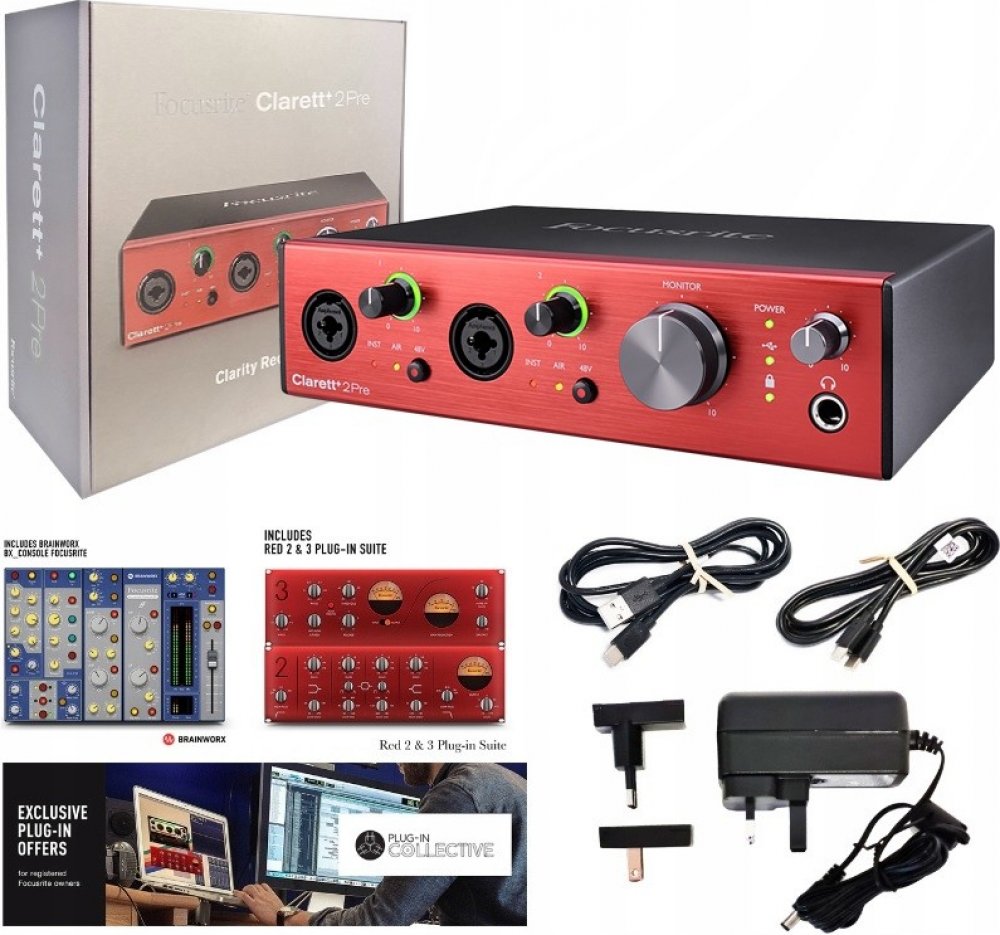 Clarett+ 2 PRE je základní model USB zvukové karty od výrobce Focusrite. Jedná se o přímého nástupce předchozího modelu Clarett 2 PRE USB. Určená je především pro méně náročnou práci v domácím studiu. Díky kompaktním rozměrům a možnosti napájení přes USB najde uplatnění i v terénu či na cestách. Disponuje A/D a D/A převodníky s maximálním rozlišením až 24-bit / 192kH...