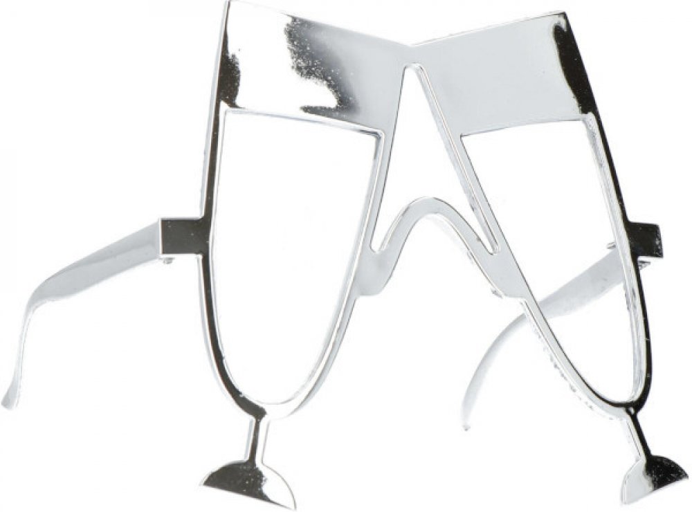 Brýle ve stříbrné barvě v podobě skleniček šampaňského jsou originální párty doplněk na oslavu příchodu Nového roku.