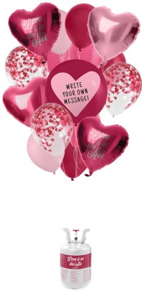 Láska je s těmito frantastickými latexovými balónky ve vzduchu. Set hélium 30 Love mix s balónky a stuhou. Balónky jsou v krásných odstínech růžové barvy. Set obsahuje balónky kulaté, transparentní s růžovými konfetami a balónky fóliové ve tvaru srdce s nápisy. Vhodné na svatební párty, oslavu Valentýna, rozlučku se svobodou nebo zásnuby. Balení obsahuje : 1x héliová bomba (0,21 m3), 8 latexových balónků (23 cm), 3 konfetové latexové balónky (30 cm), 1 latexový balón (48 cm), 4 fóliové balónky (45 cm) a 1 role pásky (cca. 40 m) Barva : růžová
