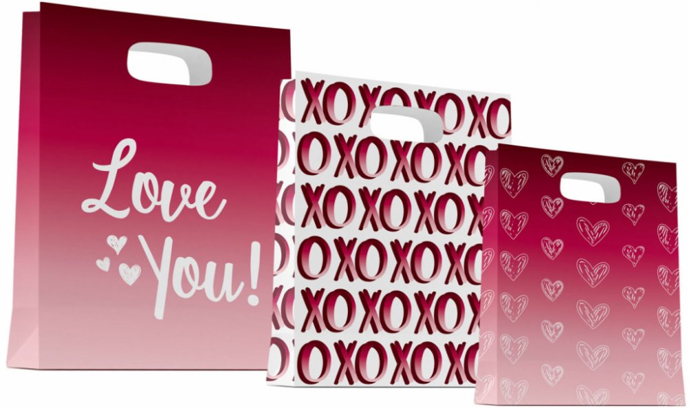Papírové dárkové tašky Love růžové mix motivů a velikostí, balení obsahu 3 ks: