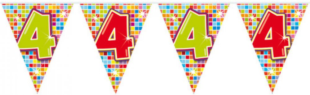 Narozeninový vlaječkový banner s číslem 4 barevný, výška 12 cm, délka 3 m.