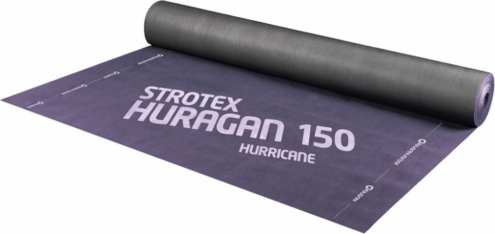 Paropropustná kontaktní membrána STROTEX HURAGAN 150 je vysoce odolná čtyřvrstvá střešní fólie, která slouží pro střechy s plným i částečným bedněním ve vícespádových konstrukcích s různým úhlem sklonu. Vyznačuje se velmi vysokou odolností vůči UV záření i mechanickému poškození a také vysokou odolností proti příčnému i podélnému roztržení. Díky použití inovativní technologie tato membrána eliminuje rozdíl v koncentracích vodních par a zabraňuje degradaci při extrémně vysokých teplotách. Chrání tepelnou izolaci z vnější strany před deštěm nebo sněhem a zaručuje udržení na střeše při silném větru a prudkých lijácích. Lze ji aplikovat přímo na tepelnou izolaci.