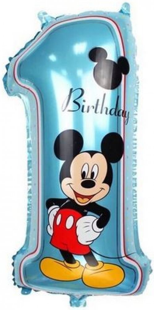 Fóliový balonek Mickey Mouse číslo 1 modrý 101 cm