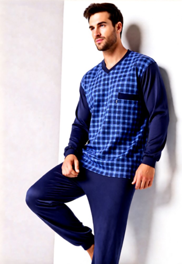 Pánské pyžamo úplet dlouhé to je kvalitní pánské pyžamo od firmy Foltýn. Moderní střih zaručující maximální pohodlnost a eleganci. Vrchní díl má výstřih do V. Kalhoty jsou volné. V pase opatřené gumou v tunýlku, která se dá vyměnit. Pánské pyžamo úplet dlouhé je vyrobeno z jemně česaného bavlněného úpletu ze 100 % bavlny. Tento kvalitní materiál je vzdušný a velice příjemný. Způsob ošetřování: p...