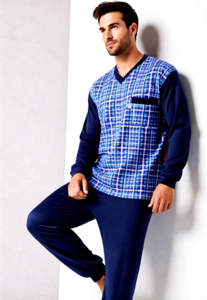 Pánské pyžamo úplet dlouhé to je kvalitní pánské pyžamo od firmy Foltýn. Moderní střih zaručující maximální pohodlnost a eleganci. Vrchní díl má výstřih do V. Kalhoty jsou volné. V pase opatřené gumou v tunýlku, která se dá vyměnit. Pánské pyžamo úplet dlouhé je vyrobeno z jemně česaného bavlněného úpletu ze 100 % bavlny. Tento kvalitní materiál je vzdušný a velice příjemný. Způsob ošetřování: p...