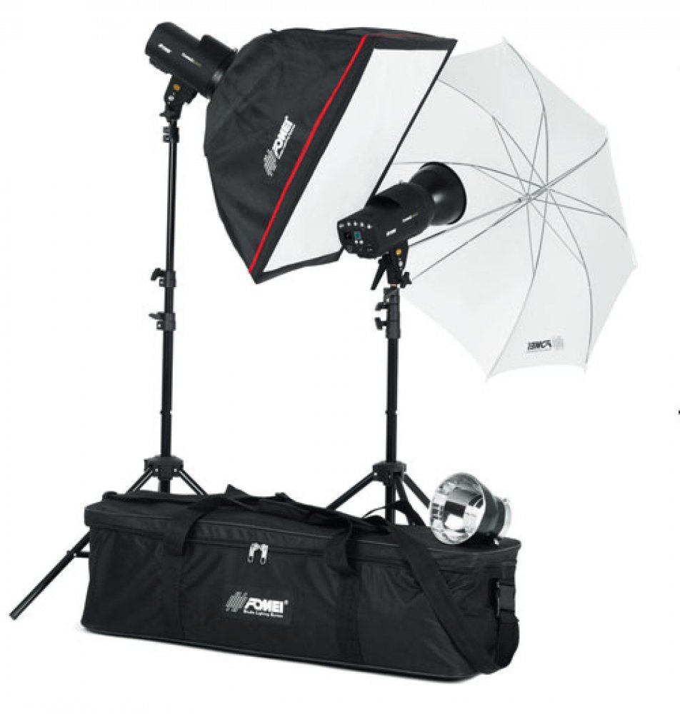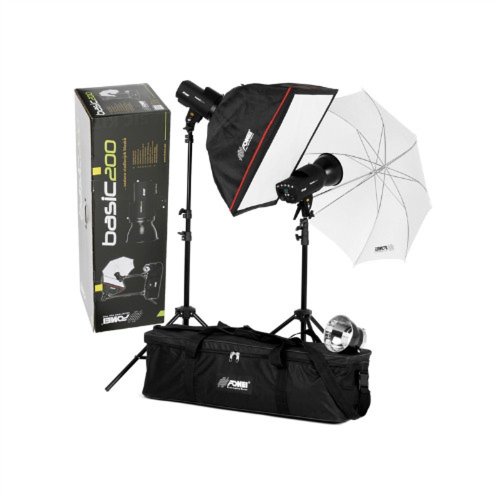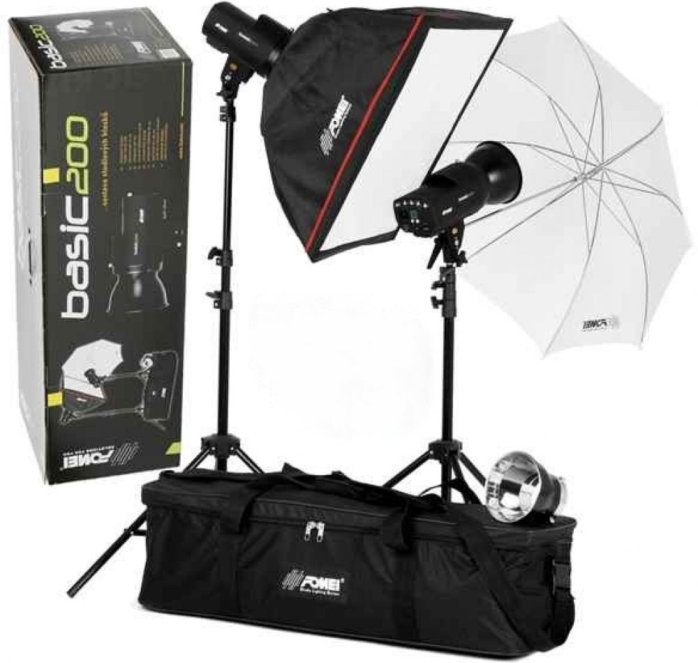 Podrobnosti o produktu FY7407 Fomei BASIC 200 KIT Souprava 2 ks studiových blesku o výkonu 200 W/s, včetně příslušenství. Sestava je vhodná pro začínající fotografy. Sestavu světel je možné použít pro fotografování portrétů, postav nebo produktů. Sestava obsahuje:2x studiový blesk Fomei Basic - 200/Ws/pilotní žárovka 150 W/, 2x stojan pro blesky,1x studiový deštník 85 cm,1x soft box 60 x 60 cm/stříbrný plus větrací otvor.
