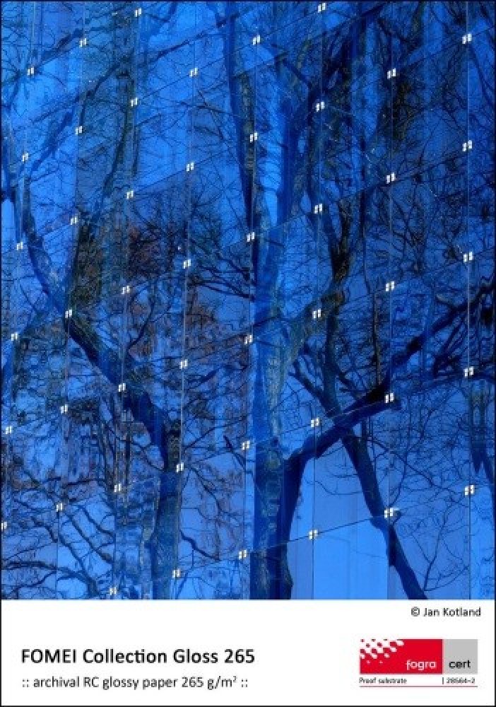 FOMEI Collection Gloss 265 je prémiový lesklý mikroporézní papír 265 g/m2 pro fotografie a digitální nátisky. Pyšní se ISO certifikací = TOP kvalita a stálost. Ekonomicky výhodné průmyslové balení. Země původu: Japonsko. Kompatibilita média s tiskárnami: Canon, EPSON, HP (dye-based, pigment). Dostupnost: , , . ICC profily a návody: . Papír FOMEI Collection Gloss 265 je certifikován společností Fogra podle mezinárodní normy o digitálním nátisku ISO 12647-2:2013. Má tedy vysoký archivační potenciál a je certifikován pro výrobu digitálních nátisků s certifikací. Dokument nese unikátní číslo 28564-2. Je to náš nejhodnotnější lesklý RC fotopapír. Ti z vás, kteří jste si v minulosti nechali s oblibou v minilabech vyrábět lesklé fotografie, byste měli právě tento papír "otestovat" - nezklame Vás. Naopak: na vlastní oči uvidíte, jak umí být tandem Vaší domácí fototiskárny a papíru FOMEI Collection Gloss 265 skvělý, překonávající možnosti "mokrého" minilabu. FOMEI Collection Gloss 265 je materiál vhodný k následné laminaci a adjustaci pomocí (kašírování).