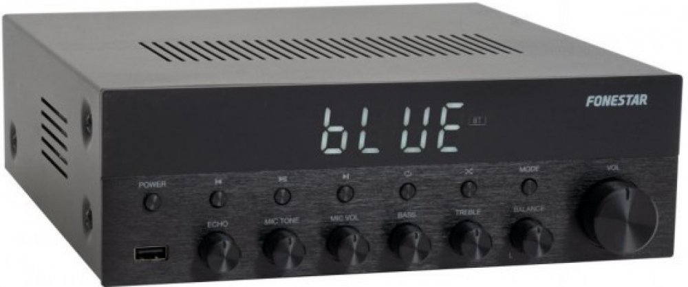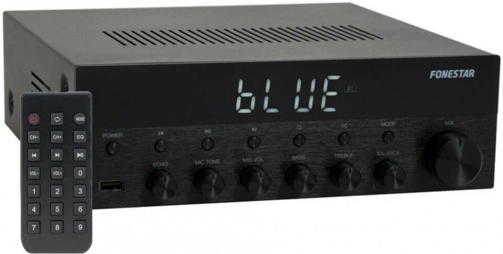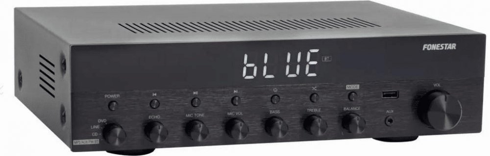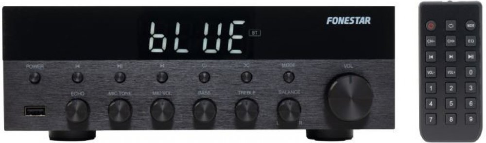 Zesilovač FONESTAR z nové řady s exkluzivním designem, povrchem čela s kartáčovaným hliníkem a LCD displejem s vysokým kontrastem a dobrou čitelností. Elegantní a praktický design, lze snadno integrovat do jakéhokoliv prostředí, ať už pro domácí nebo profesionální použití. Díky možnosti přehrávat z více zdrojů je velmi univerzální. Dva mikrofonní vstupy umožňují, aby byl použit například pro karaoke a užili jste si s ním ještě více zábavy.