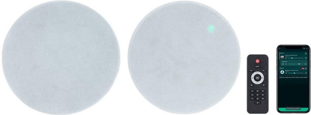 Set dvou stropních 2-pásmových reproduktorů osazených 5,5" basovým reproduktorem s kevlarovou membránou a 1" výškovým reproduktorem. Jeden má zabudovaný digitální zesilovač 2x20W RMS a výstup na druhý pasivní reproduktor. Obsahuje WIFI připojení pro přehrávání internetových rádií a podcastů. Také má stereo linkový vstup (2x RCA) a stereo linkový výstup (2x RCA). Ovládání přehrávání internetových r...