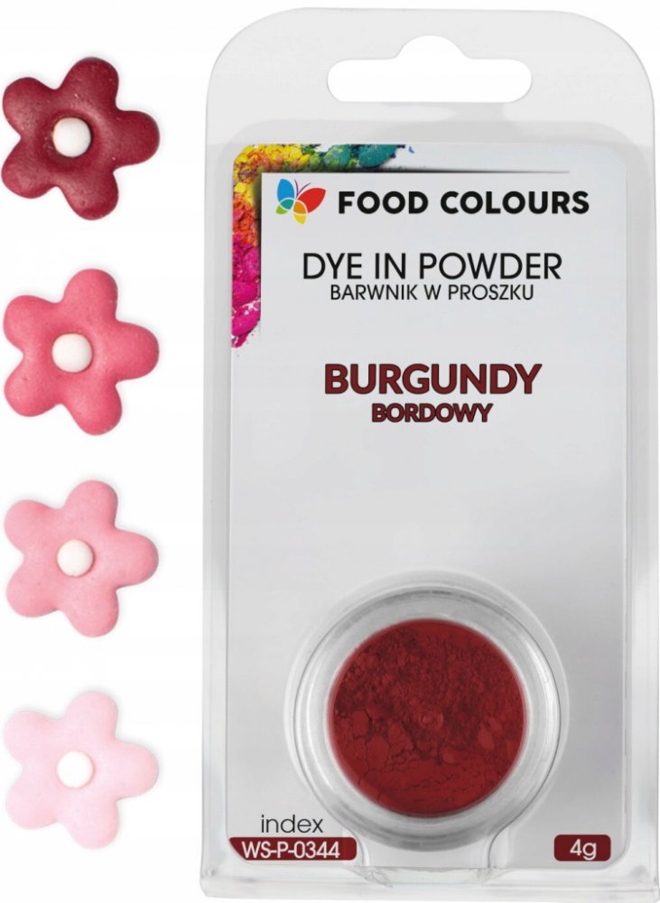 BORDÓ BARVIVO V PRÁŠKU FOOD COLOURS 4 g BURGUNDY PRO ŽELÉ