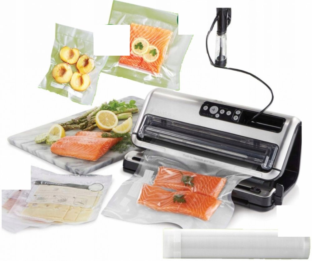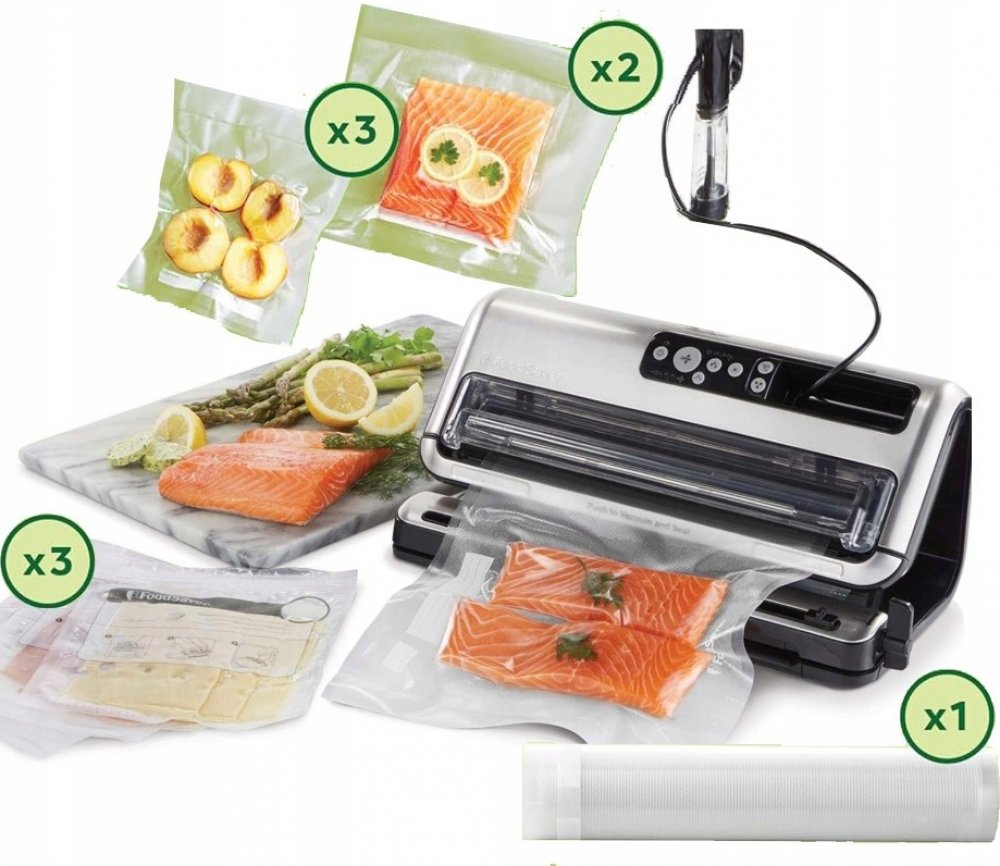 * Používá odolné profesionální drážkované fólie. Tyto fólie se vyrábějí z materiálu o vyšší hustotě. Mohou být mraženy, vařeny a lze je bezpečně použít i v mikrovlnné troubě. Drážkování na folii pomáhá vytvořit vzduchotěsný spoj - spoj má větší trvanlivost než standardní sáčky se zipem či sáčky svačinové. Sáčky lze použít opakovaně.