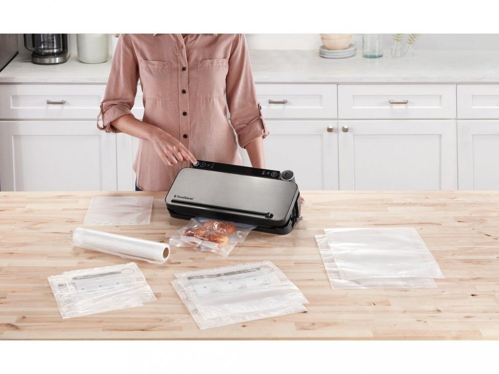 Novinka, která je vybavena až 5 režimy vakuování. Novinkou je také režim Pulze pro vakuování křehkých potravin jako jsou koláče, dorty, ořechy a podobně. Tyto potraviny zavákuuje bez poškození. Samozřejmostí je i vestavěný nůž na rolky, zásobník na role a možnost připojit Fresh kontejnery a množství jiného příslušenství. Systém vakuových baliček FoodSaver chrání čerstvost a nutriční hodnotu jídla,...